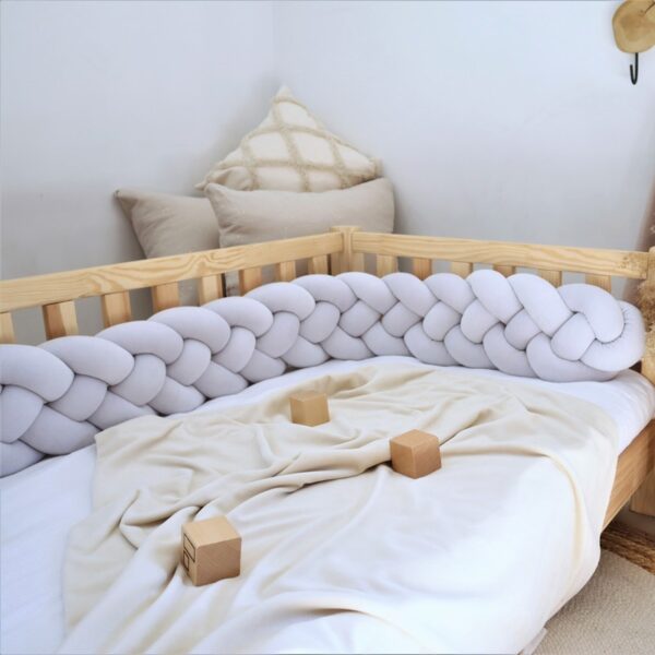 -Warkocz 200 cm pasuje na większą połowę łóżeczka 120 x 60 cm oraz na połowę łóżeczka 140 x 70 cm