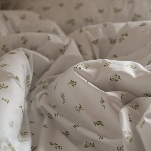 Pościel z wypełnieniem w kolorze Białym W Zielone Listki Z Falbaną