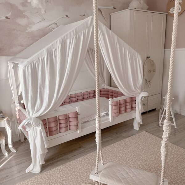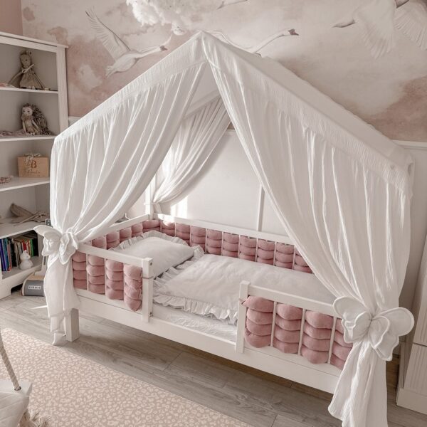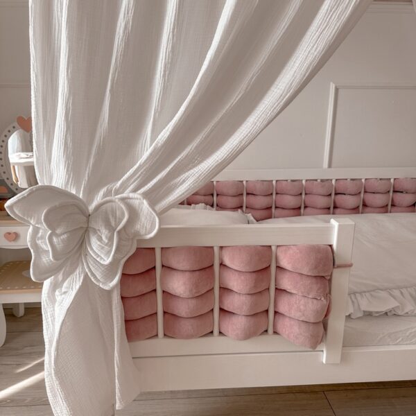 Jest to produkt do samodzielnego wplecenia między szczebelki łóżeczka, świetnie sprawdza się kiedy chcemy mieć wielokolorowy ochraniacz. Długość wybrana przez klienta (+/- 5%).