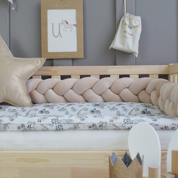 Warkocz 3 pasma to bardzo miękki ochraniacz do łóżeczka dzięki, któremu dziecko ma poczucie bezpieczeństwa i wygody, a rodzice mają pewność, że ich pociecha jest bezpieczna. Warkocz może również posłużyć także jako ozdoba na kanapę dla starszych dzieci i młodzieży.