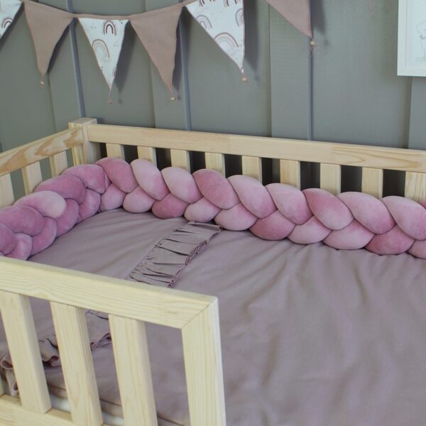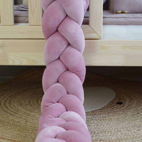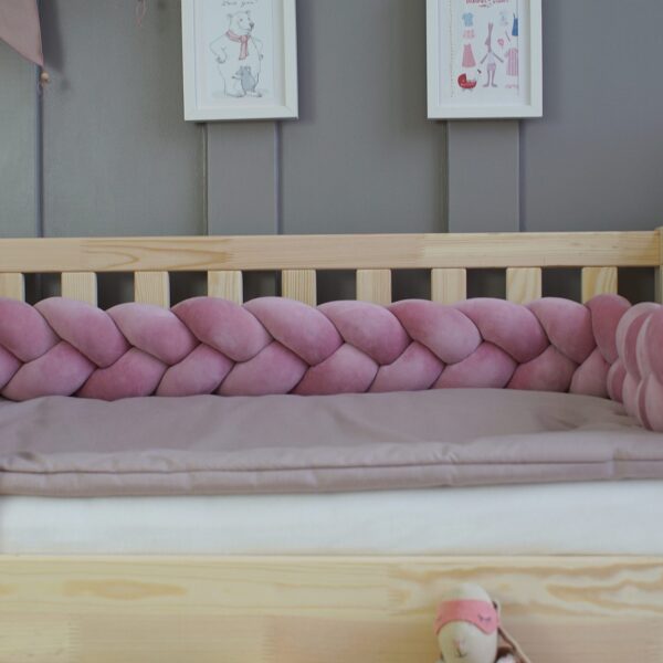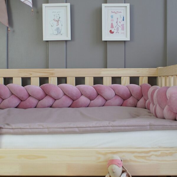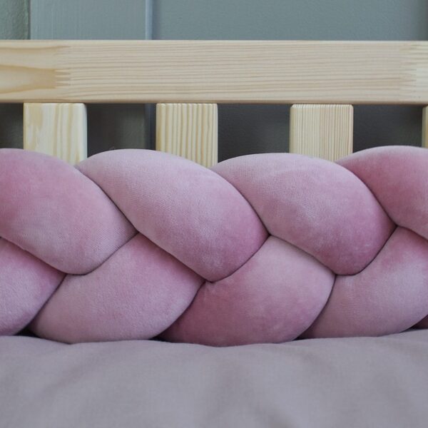 Ochraniacz do łóżeczka warkocz Wiśniowy Róż velvet