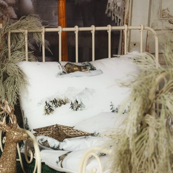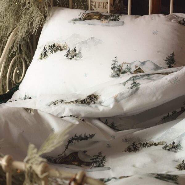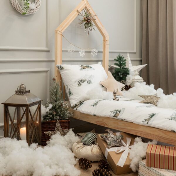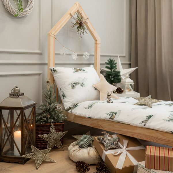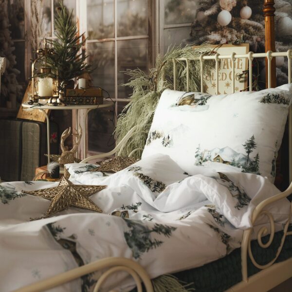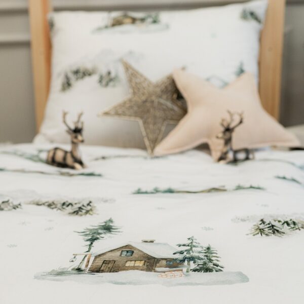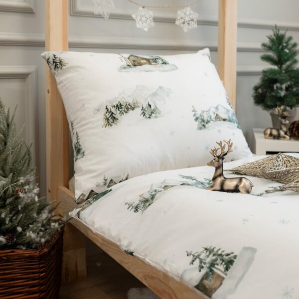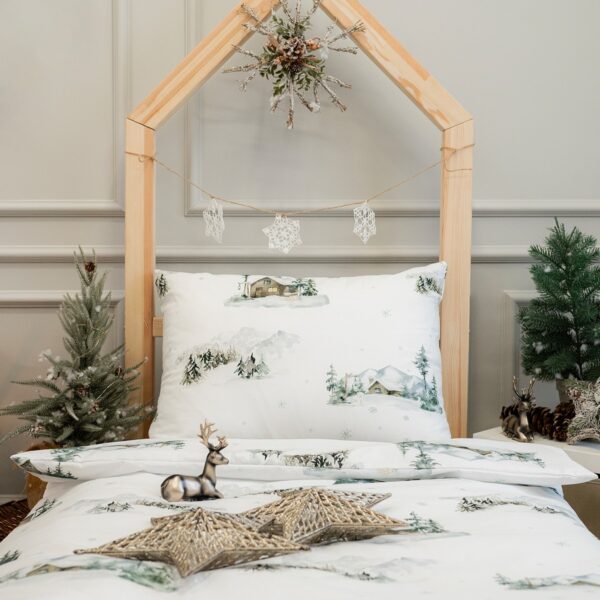 Komplet pościeli świątecznej wykonany z najwyższej jakości miękkiej polskiej bawełny.